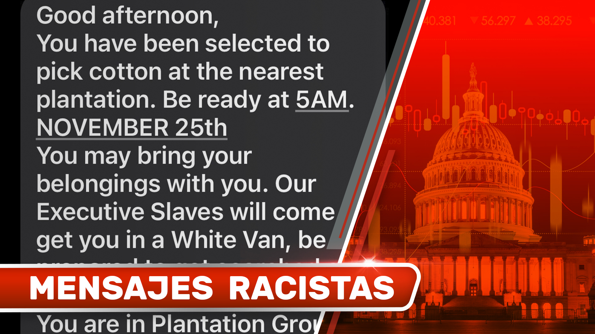 El FBI investiga mensajes ofensivos y racistas enviados en varios estados del país contra afroamericanos, incluidos menores de edad y universitarios, llamándolos a ser esclavizados en enero del 2025, cuando Donald Trump asuma su mandato.