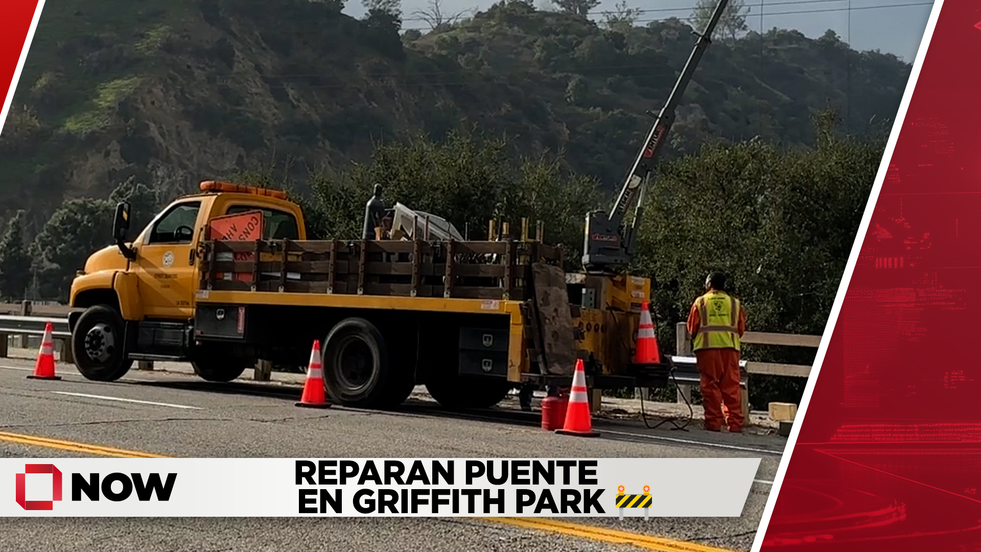 El Departamento de Calles de Los Ángeles trabaja en la reparación del puente en Riverside Drive y Sonora, dañado tras un accidente. Hay tráfico en la zona y se recomienda precaución.