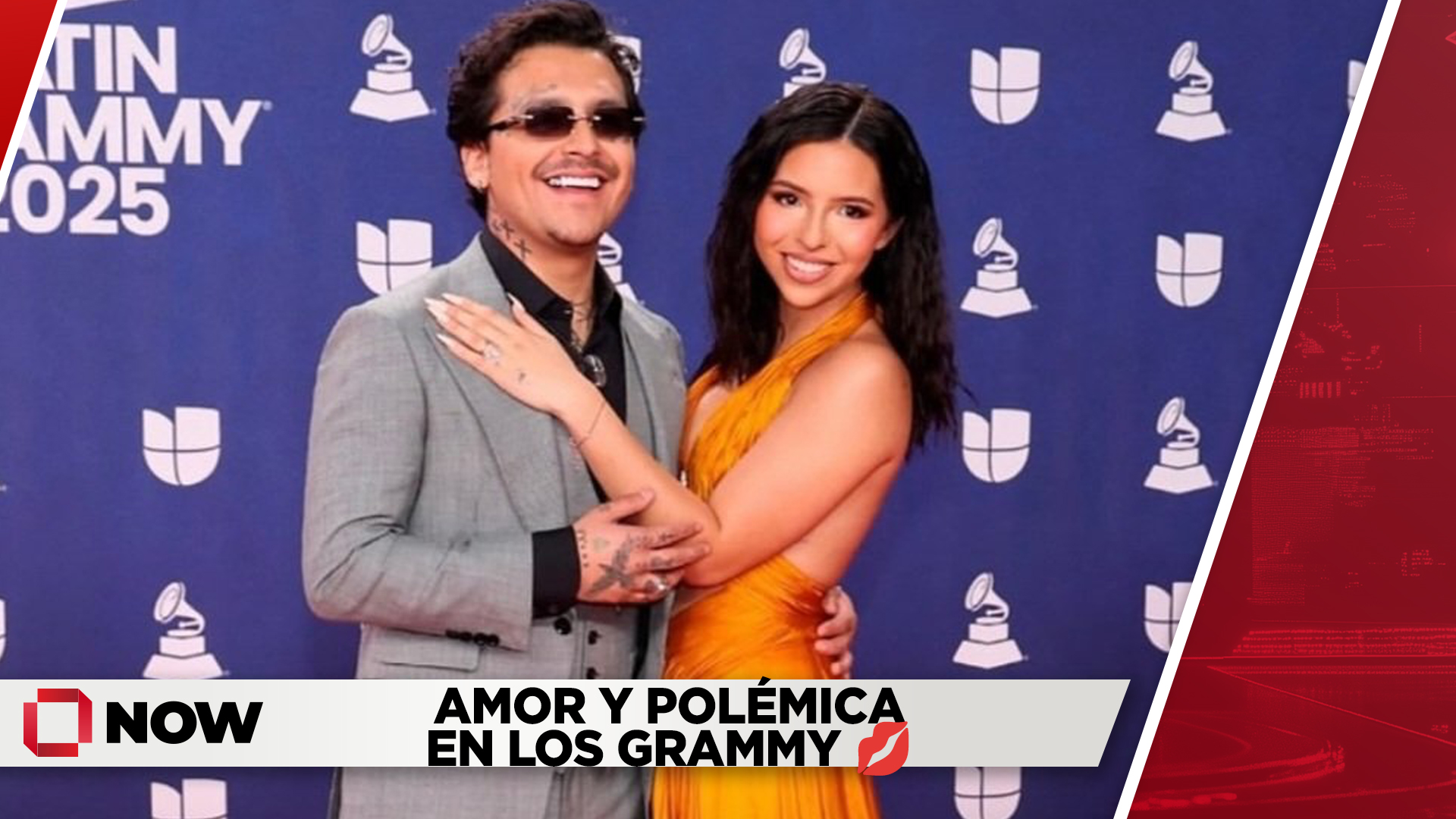Ángela y Nodal debutan como esposos en los Grammy