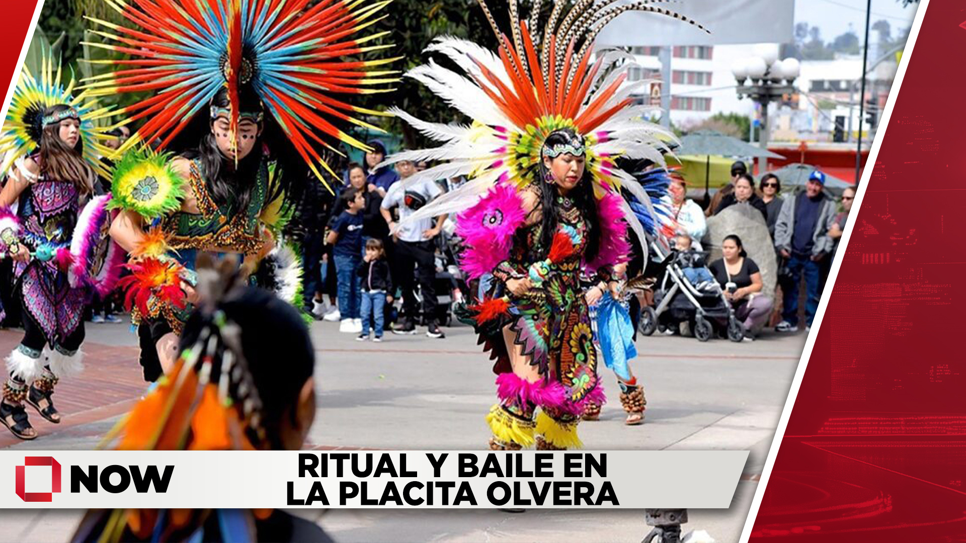 Celebración por el Día de la Independencia de México con ritual y danza cultural en la histórica Placita Olvera. Colores, música y orgullo comunitario en el corazón de Los Ángeles.